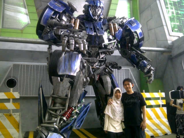 Nah, setelah naik transformer kami sempat berfoto di depan tokoh mobil yang kini jadi robot. Ini ada sih foto yang langsung jadi. Jadi setiap yang foto di depan ini (dan juga beberapa tempat lainnya), juga di foto pake kamera petugas. Tapi ini gak wajib beli. Lumayan euy 12 SGD. Rencananya setelah naik transformer kami mau naik Human Battlestar Galactica, tapi apa daya kepala kliyeng-kliyeng. Padahal kami dah sempet naro barang di loker dan juga masuk antrian loh, hahaha. Kami pun memutuskan untuk makan dan kemudian mencari mushola (karena hampir masuk waktu dzuhur).